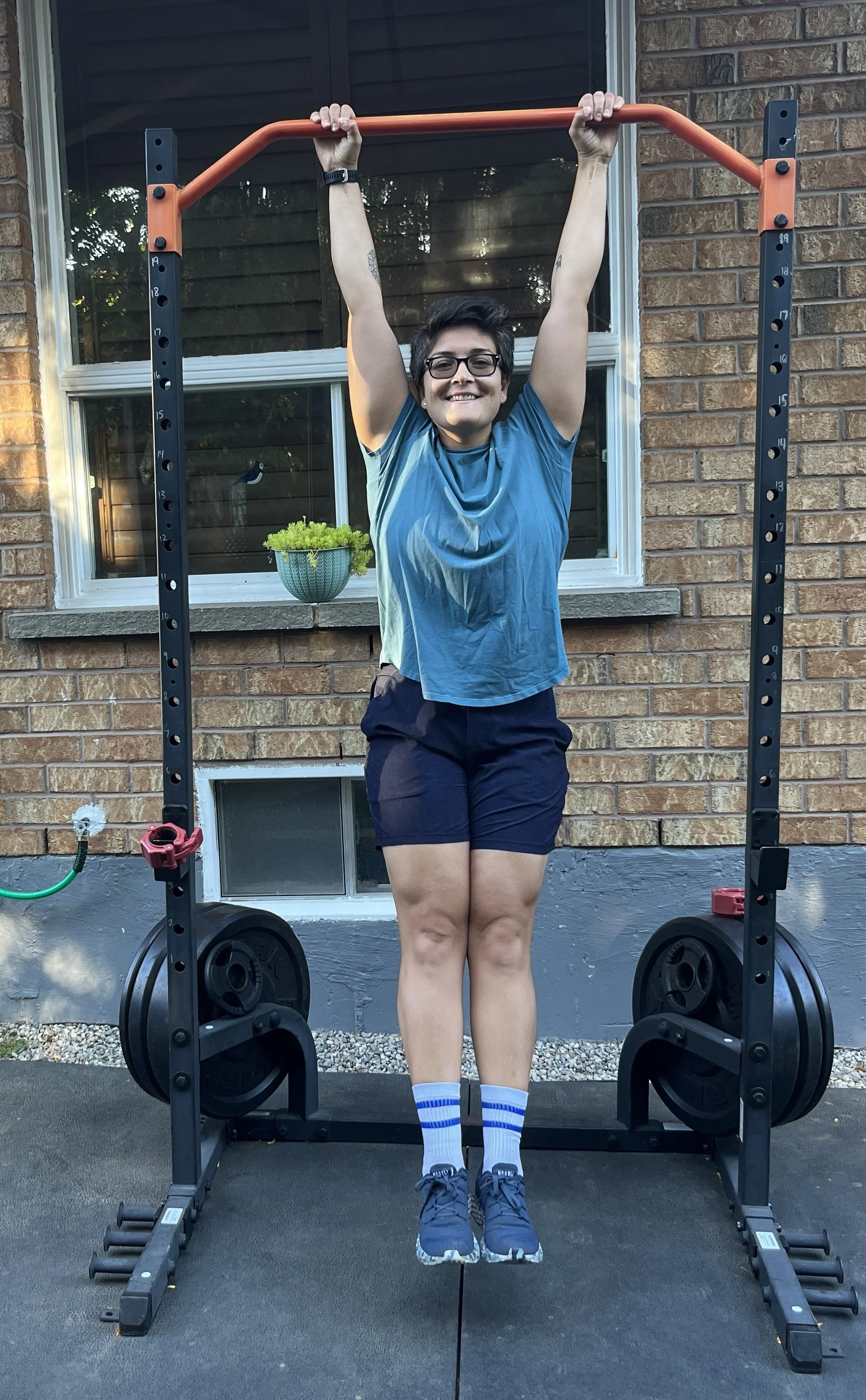 Your ability to hang from a bar is a great indicator of grip strength and ultimately upper body strength which is linked to longevity. Aim for 30 seconds to 1 minute; 1 minute is a solid score!